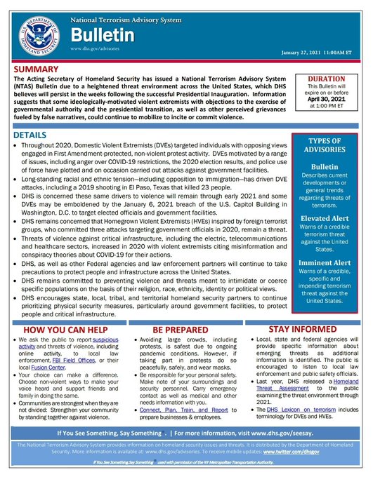 NEW: DHS Issues a National Terrorism Advisory System Bulletin